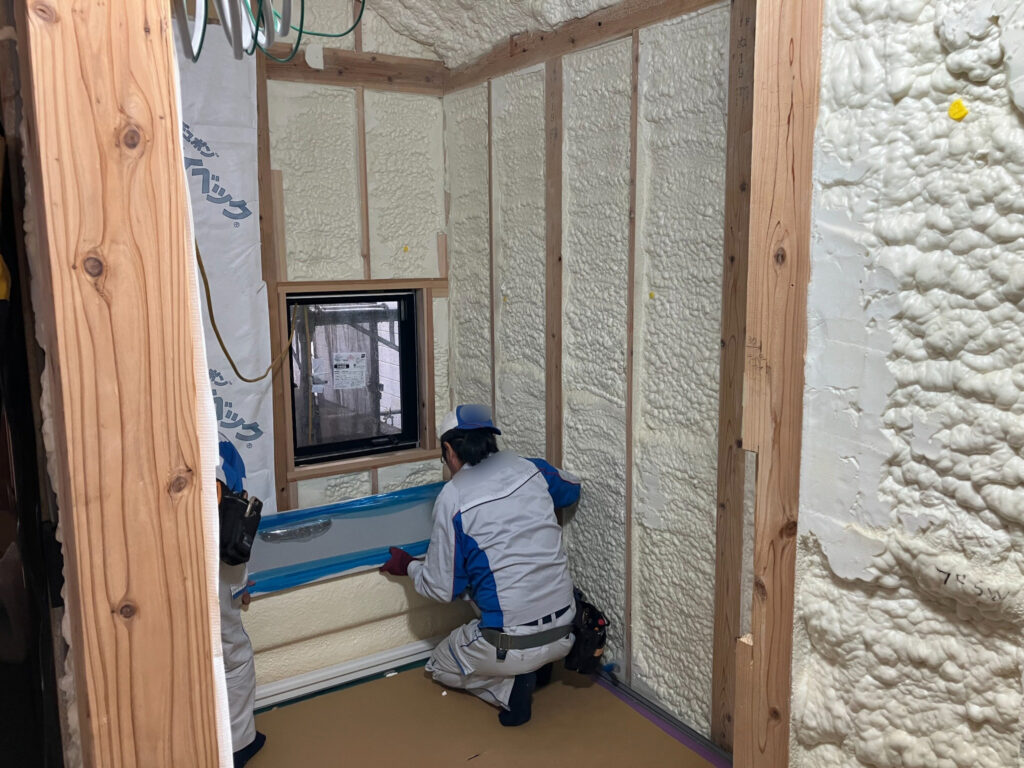 骨組みが見えていた段階から一歩進み、いまは断熱や配線など、住まいの中身を組み立てる工程に入っています。