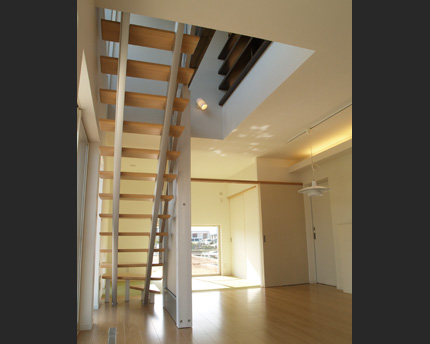 新たに開発・造成された区画に他の施工会社により多くの廻りの住宅に対し、この住宅の様相は自然の条件に逆らうことなく素直に、そしてあきらかに差異をもって存在しています。